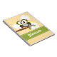 Personalise this cute and stylish custom owl spiral notebook cover with your name on the lime green contrast stitch ribbon design. An adorable wide eyed owl sits perched on a leafy branch against a fluffy cloud and yellow polk-a-dot sky background. This sweet and girly spiral bound notebook can be used as a journal or diary too, and it is equally great for home office or school supplies use. Artwork on this personalised and custom spiral journal is © Chrissy H. Studios, LLC. All Rights Reserved.