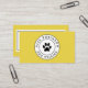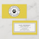 A retro modern business card featuring a circular black and white logo on the front on a yellow background. The background color can be changed to anything that matches your business. This would be perfect for anyone working with pets such as a dog walker, vet, doggy daycare or grooming salon.