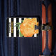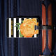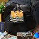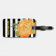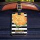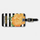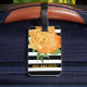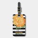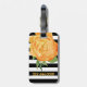 Elegant luggage tag done in a black and white bold stripe pattern, with watercolor artwork of a pretty golden yellow peony flower bloom. Personalise all the text, on the front and back, to read what you want. Lovely way to spot your luggage from a distance.