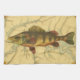 This print illustrates an artistic picture of a yellow perch fish. The background displays a vintage geographic map in light beige colours. The brown frame resembles old wood pattern with yellow-red flowers in the edges. A great addition to your fishing collection!