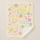 Cute originally designed text name personalised blanket. This light yellow, pink, and aqua blue text typographical blanket can also be customised with your own short name, currently reads Georgie. Other names available or contact me for name requests. Original art and design by Sarah Trett for www.mylittleeden.com