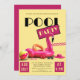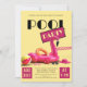 A trendy, fun end-of-summer pool party invitation in hot pink and yellow. The design features a pink flamingo pool float with a colourful ball, sunglasses, flip-flops, headphones, and a pink hat on a yellow background. Celebrate the end of summer in style with this stylish invitation. Add your party details to the invite and send it out to your friends and family. There's plenty of space on the back of the card for any additional information you might want to add.