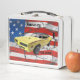 This metal lunchbox is perfect for any car enthusiast. The unique design of a pontiac gto -the judge car, on a american flag background, is sure to catch anyone's eye. All text is fully customisable to meet your needs, making it the perfect gift for any car lover.