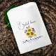 Yellow sunflower and purple wildflower design on a watercolor illustration, perfect for a charming favour bag. This favour bag features a delicate watercolor painting of a sunflower, adorned with yellow and purple wildflowers. The beautiful combination of the vibrant sunflower and the colourful wildflowers creates a lovely and memorable design, making it an ideal choice for a unique favour bag.