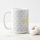 Enjoy your morning coffee with a Yellow Quatrefoil Personalised Coffee Mug. Mug design features a simple quatrefoil background and fancy emblem to personalise with your name and monogram. Additional gift items available with this design as well as a variety of colours.