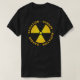 Yellow-orange radiation symbol with warning text on T-shirts in assorted styles and colours.