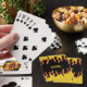 Create a personalised deck of card for your favourite player. These playing cards feature illustrations of flames in yellow and red set against a black background with a name or other text in bold yellow lettering.