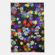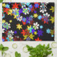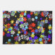 Yellow, Red, Blue, Cream, Violet Flowers On Black Tea Towel