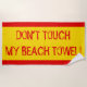This design features the message "DON’T TOUCH MY BEACH TOWEL!" in red text on a yellow background, along with red borders.