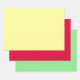 Yellow wrapping paper sheet, red wrapping paper sheet and a green wrapping paper sheet. A trio of red, yellow and green wrapping paper for birthday gifts and more.