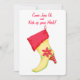 Invite your friends and family to your Christmas Party or other event with this cute and sophisticated invitation. This invitation has a whimsy and colorfuy woman's boot for a stocking. A whimsy red poinsettia on a lime green band is on the side of the yellow boot stocking with a red cuff. The heel is red with green stripes. The boot colours are red, lime green and yellow on a modern and fresh white background. The boot is on the other side in a smaller version with easy to customise this invitation for your Christmas event and you can easily add other fields if needed. This design is original art by Phyllis Dobbs and comes on coordinating return address labels, stamps and other products in this store. Fully customisable.