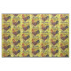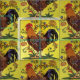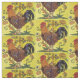 Yellow Red Rooster Chicken Tiled Folk Art Fabric