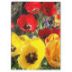 One of the prettiest sights in the spring are all the beautiful flowers that bloom. In this stunning floral photo image vivid scarlet red and yellow tulips have opened their petal wide to soak up the warm spring sunshine, creating a vibrant splash of color.