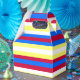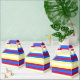 Vividly designed favour box using bold multi-stripe colours of yellow, red, white and blue. Pair this with other gift packaging options.