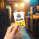 Medical staff yellow Registered nurse, caduceus photo template Badge with barcode. It features your name, title and photo on white background while the caduceus symbol and the barcode are on yellow.