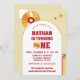 The bold colours and eye-catching design make this invitation a standout choice for a memorable first birthday celebration. The tagline "Groovy celebration for the little one" promises a fun-filled event that combines classic retro elements with a modern twist. Perfect for setting the stage for a joyful celebration, this invitation will ensure your guests are eagerly anticipating a day of music, laughter, and unforgettable memories. Make your child's milestone birthday extra special with this unique and charming invitation.