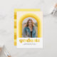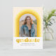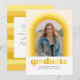 This fun graduation announcement features an arch with different shades of yellow around a single photo. The back of the card has a coordinating stripe pattern as well as space for a personal message or invitation details for a graduation celebration.