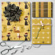 Yellow Retro Mid Century Modern Cat Christmas Wrapping Paper Sheet
