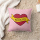A bookish pillow featuring an illustrated graphic of the word bookish on a yellow gold colour ribbon around a reddish pink heart against a light pink colour.