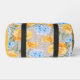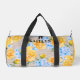 Beautiful floral duffel bag that you can personalise with your name or other text features yellow roses and blue hydrangeas.