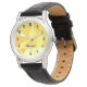 A pretty yellow watch with a watercolor painting showing an abstract flower. The watch can be personalised with the owners name to make it really special.