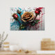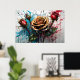 Yellow rose flower and red rose buds poster