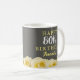 Yellow Rose Flower Floral 80th Birthday Coffee Mug. Beautiful yellow roses. The background is chalkboard grey. The text is in white and yellow colours and is easily customisable - personalise it with your name and age.
