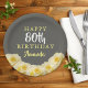 Yellow Rose Flower Floral 80th Birthday Plates. Beautiful yellow roses. The background is chalkboard grey. The text is in white and yellow colours and is easily customisable - personalise it with your name and age. Perfect for a woman`s eightieth birthday party.