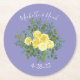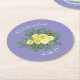 Yellow Rose & Purple Periwinkle Wedding Round Paper Coaster