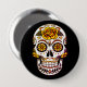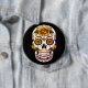 Yellow Rose Sugar Skull on Black 10 Cm Round Badge