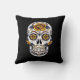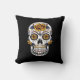 Yellow Rose Sugar Skull on Black Cushion