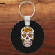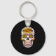 Yellow Rose Sugar Skull on Black Key Ring
