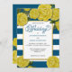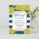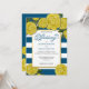 This elegant wedding invitation mixes vintage with modern. The bold navy and white stripe pattern is sprinkled with vintage yellow rose graphics.