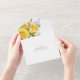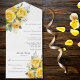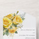 Planning your dream wedding starts with the perfect invitation. Our All-in-One wedding invitation is designed to capture the romance and elegance of your special day. Featuring bouquets of delicate yellow roses entwined with baby's breath, this invitation sets the tone for a celebration filled with love and joy. The All-in-One wedding invitations are both beautiful and practical by combining the wedding invitation with an easy to remove perforated RSVP postcard. They are also quick and easy to prepare for mailing. Simply address the invitation, fold the back flap and seal with the included clear stickers. Once your guests receive the pre-addressed invitation they simply tear off the perforated RSVP card and drop it in the mail.