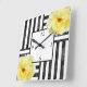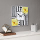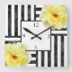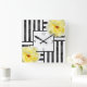 Yellow Roses Black and White Stripes Square Wall Clock