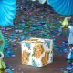 A Party Favour Box with a pretty vintage floral pattern of yellow roses and blue Forget-Me-Not flowers. Click Customise It to add your name or message, change background colours and more.