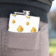 The flask itself is fine. It’s a cheap flask, obviously bought in bulk, however am prepared to overlook that. Given that it is a personalized item, I would have liked to have seen gift boxing instead of the generic packaging. Terrible printing, and/or quality. It’s a cheap, tacky vinyl. It is not cut straight and is also applied in a way that it is overhanging the bottom, causing the glue to catch on items and it will eventually roll and tear, damaging the wrap.