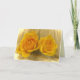This lovely birthday card features a still life composition of two exquisite yellow roses on a beige lace background. The petals range in color from pale yellow through gold to a deep orange. The text can be customized for your special occasion.