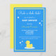 Blue and Yellow cute little duck swimming Baby Shower Invitation.