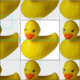 Yellow Rubber Duckies Print Pattern Fabric. Decorate your home or business with custom designer cotton or linen fabric.