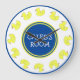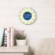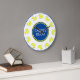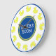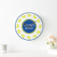 Clock design features an original marker illustration of yellow rubber ducky bathtub toys, with nautical blue and yellow accents. Just personalise for a fun beach house, bedroom, or bathroom decoration.