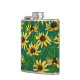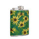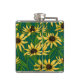 Yellow Rudbekia on dark green Hip Flask