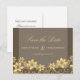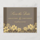 Elegant and refined Rustic Floral Save the Date Postcard featuring a two-toned digital art wood panel background in dark brown and a lovely cascade of beautiful flowers framing the bottom of the design in soft yellow. This sweet design is perfect for announcing a seasonal wedding with an outdoor or garden theme. Easy to customise, simply add the details of your wedding in the text fields provided. Click on the "Customise It" button to find additional personalisation options.