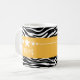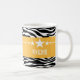 Trendy and modern Sassy Star Zebra Mug featuring a chic black and white zebra print background and a bold yellow border adorned with a fun star motif. This girly design may be customised with the personalised text of your choosing. Click "Customise It" to find more personalisation options.