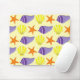 Mousepad features an original marker illustration of a row of shells and starfish. Great for the beach!
