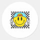 Yellow Smile Face Cute Checkered Peace Smiling Hap Classic Round Sticker