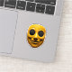 "This design features a bright yellow, seemingly smiling mask with large, dark, mesh-covered eyeholes. The contrast between the cheerful expression and the obscured eyes creates an unsettling and intriguing effect. The smooth texture of the mask adds to its enigmatic quality. This design is versatile for products aiming for a mysterious, theatrical, or slightly eerie aesthetic. Imagine it on apparel, posters, accessories, or home decor that explores themes of identity, anonymity, or the uncanny."