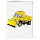 A whimsical yellow dump truck ready to hit the construction sites and haul the heavy loads or plough the snow covered roads to provide safe road travel.