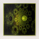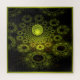 20” x 20” jigsaw puzzle with an image of a transparent sphere with luminous, lacy yellow circles on a background of large and small luminous, lacy yellow circles on black. Glowing yellow-green border. See the entire Fractal Art Puzzle collection in the HOME section.