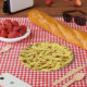 Yellow spiral pasta pattern paper plate